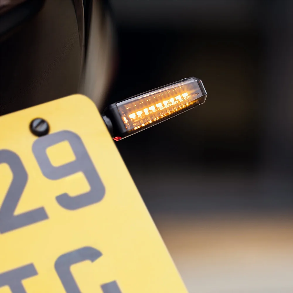 Die vorderen Blinker sind auf beiden Seiten des Lenkers montiert, während die hinteren Blinker symmetrisch neben der Rücklichtbaugruppe platziert sind.